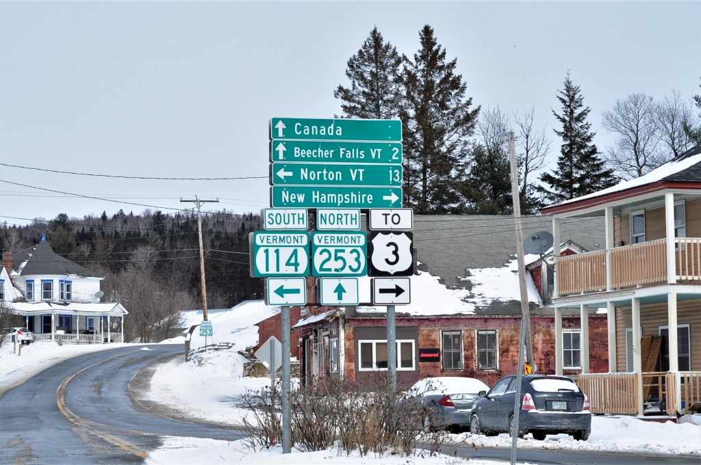 After wandering around the main street in 9 degree cold, taking a few photos, I returned to the Jeep and head north on Rt 114 towards Norton. The next destination was Canaan, VT, a border town snugged up tight against New Hampshire and Canada.