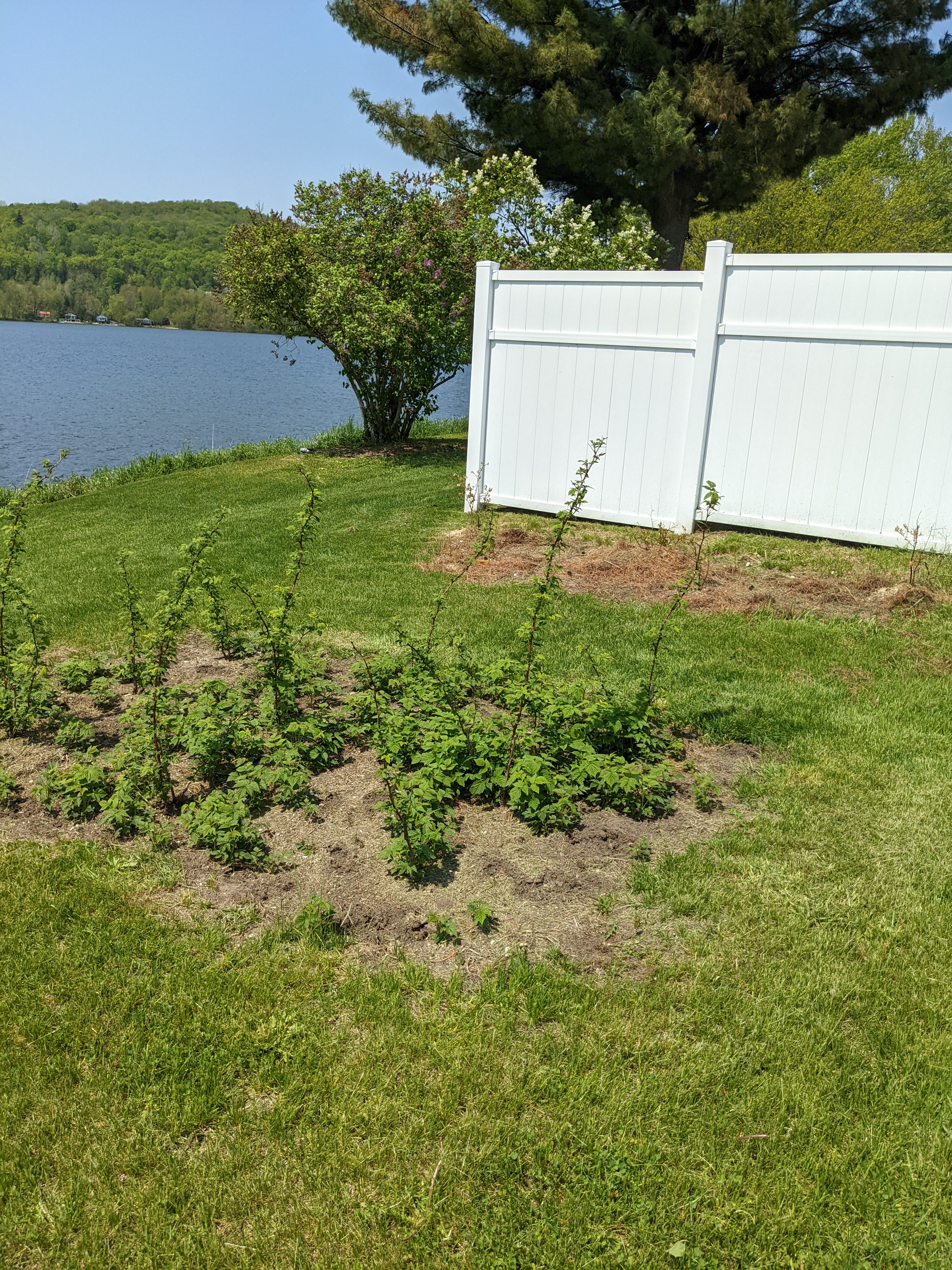 While I was working in the garden, my wife spent some time going after the raspberry and blueberry plants, getting everything weeded out and ready for the growing season. The raspberry plants were newly planted last year, so this will be the first harvest year. They look fantastic so far!