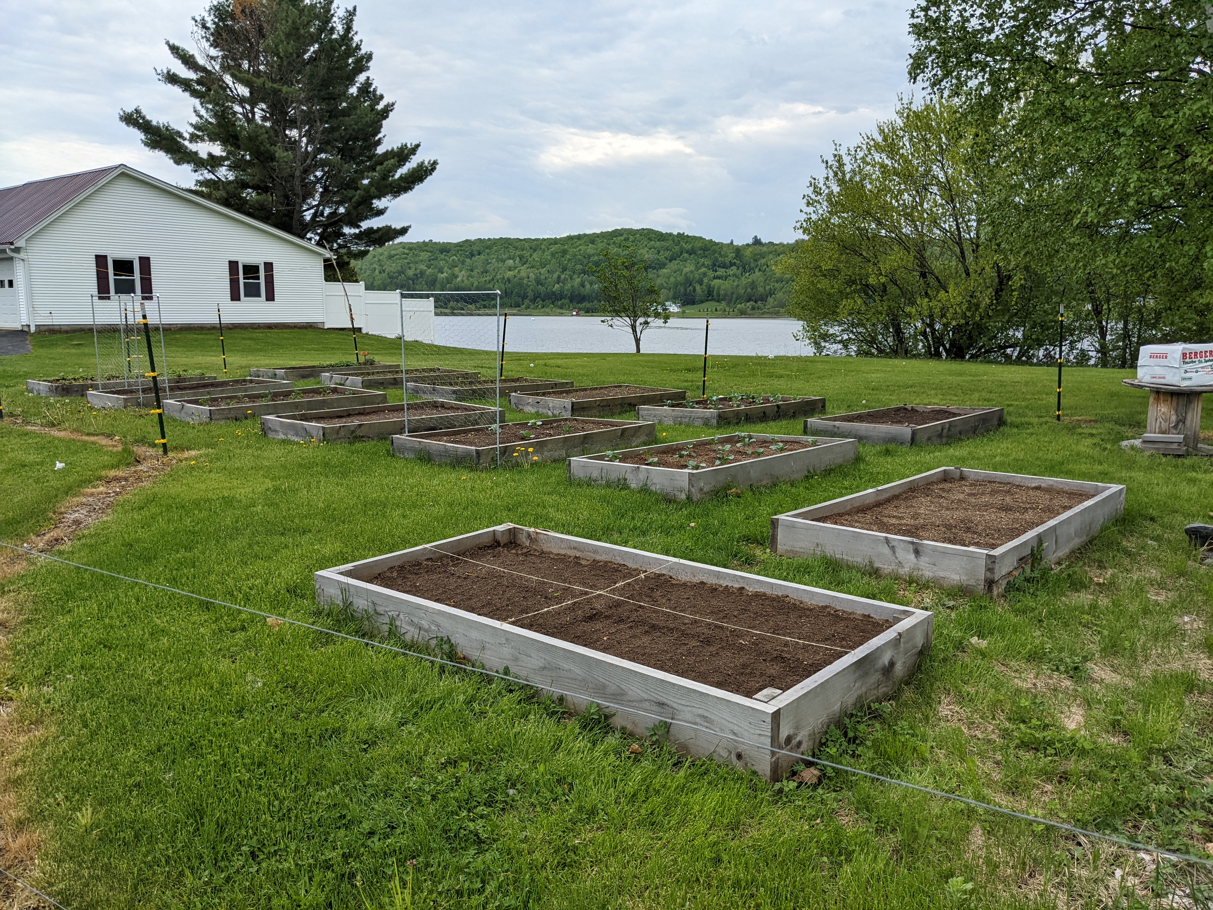 Got out into the garden early on Saturday morning, fully armored against the onslaught of mosquitos and the dreaded black flies that are found in The North this time of year. Long pants, long sleeve shirt, a hat, and for the first time ever, a bug net pulled down over my hat to keep the flying vermin off my head and face. I had never used one before, and I’ll say it now: That was the best $3 I’ve spent in a long time. The bug nets look kind of silly, but they work.