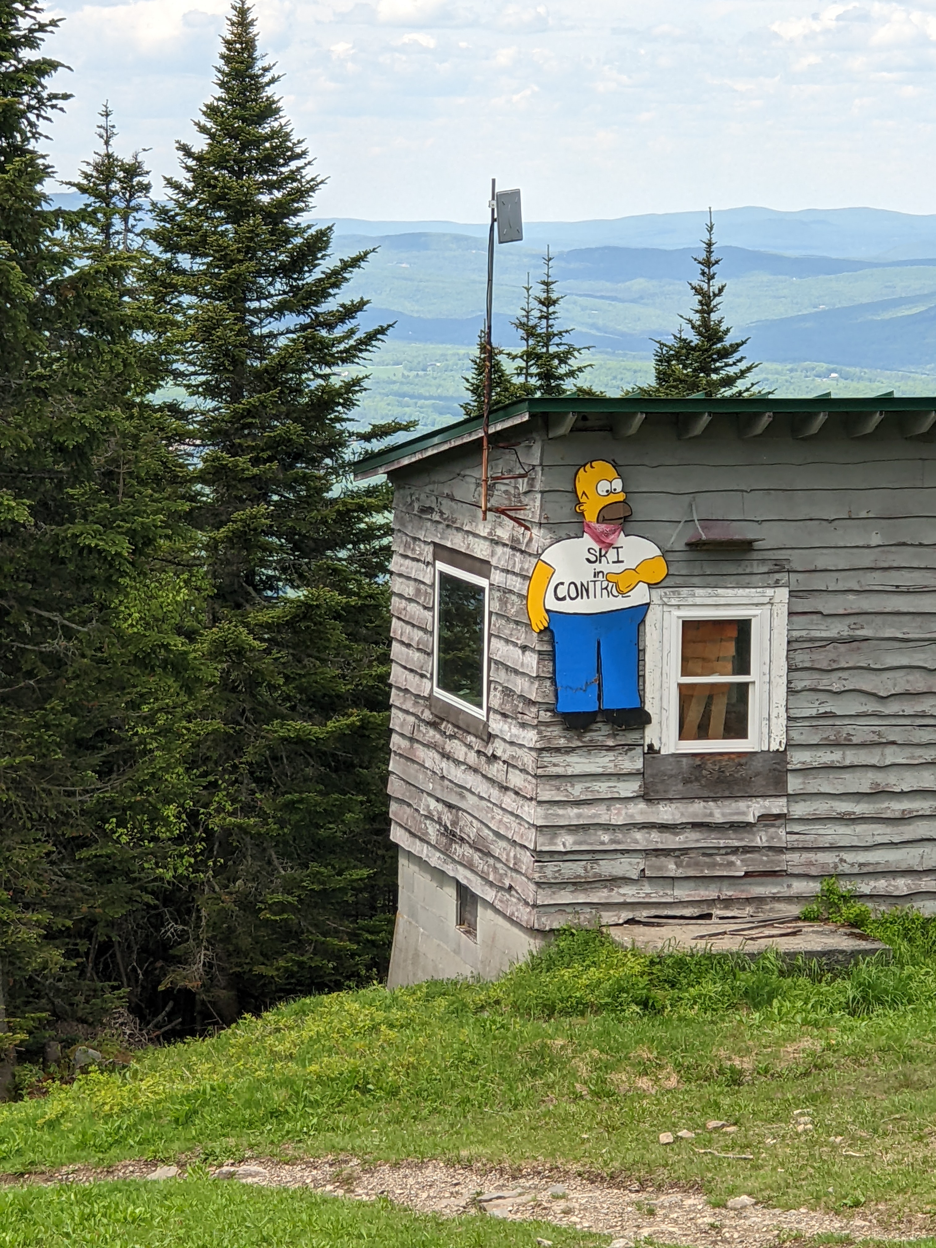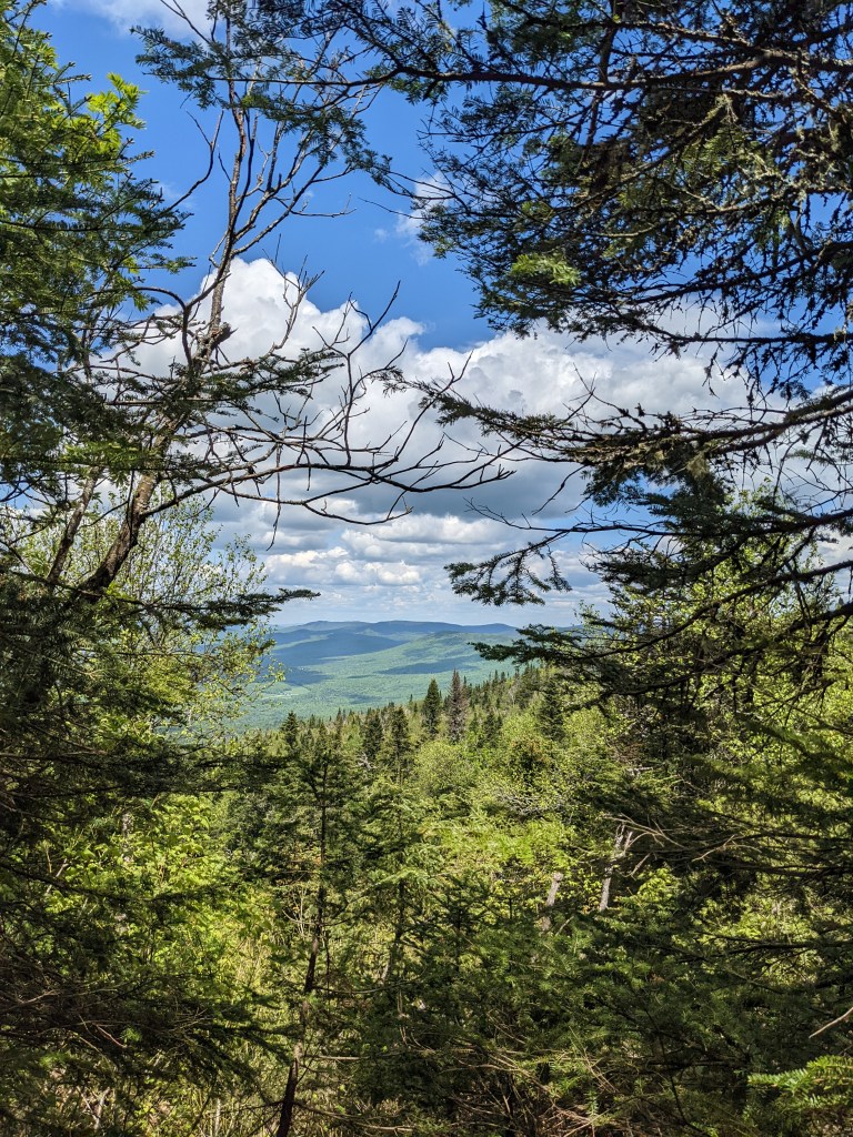 Choose either trail, as they both feature very steep switchbacks and end up at the top. We chose the Red Trail, as it’s advertised to have good Northeast Kingdom views along the way. With the trees in full dress this time of year, there aren’t any views until you near the top.