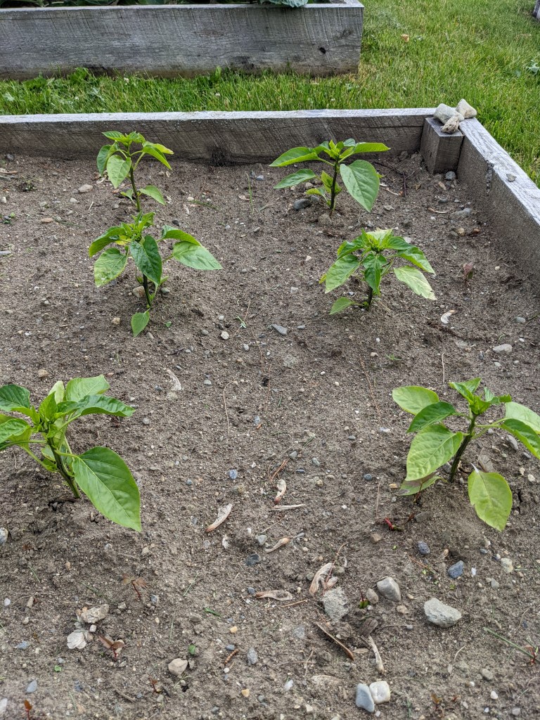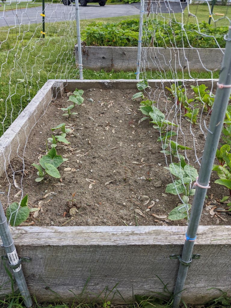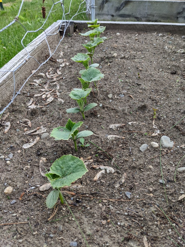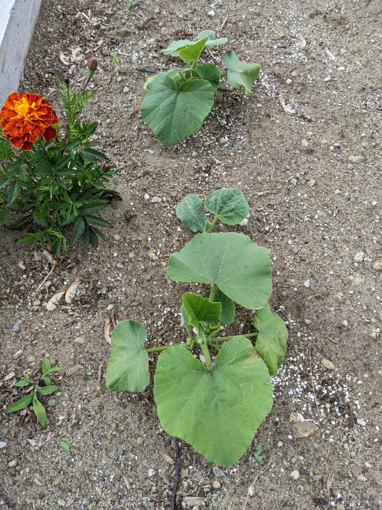 We grow Butternut squash as a winter storage item, and this year was the first year I’ve started the plants indoors. Once transplanted they scared me as they lost some color, blanching around the edges a bit. Again, time and patience solved the issue, and the transplants are strong and healthy. The “backup seeds” I planted near each of them have also sprouted. I plan to let it all rip and see how the harvest pans out.