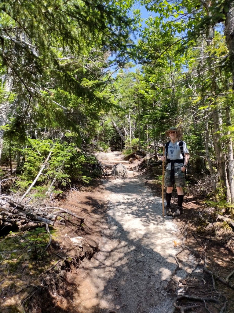 I don’t think I’ve mentioned this before, but I’m the old guy you see on the trails with solid maple wood hiking staff. It’s a tad over six feet long. I’ve had this one for almost 20 years now; I cut it and my son’s on my property when I lived in western Maine. My experience is it far surpasses the high-tech tickety-tick “trekking poles” that are popular today. The extra length in particular is quite handy, especially downhill, while the softened wood that develops at the tip grips rock better than the steel and rubber tipped poles. It can also be used to fend off catamounts and coyotes!