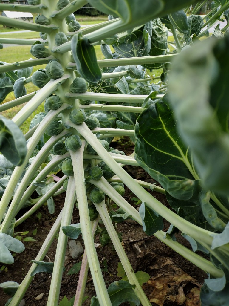 All of the brassica is looking good. The direct-seeded broccoli is quite large, and on the cusp of head production. The cauliflower replanted at about the same time is up, and have generated true leaves. The transplants, both cauliflower and broccoli that were planted in the beds the onions came out of are doing well, although a couple of seedlings didn’t make it. The first of the Brussels sprouts are closing in on harvest, and the second planting of transplants are taking hold.