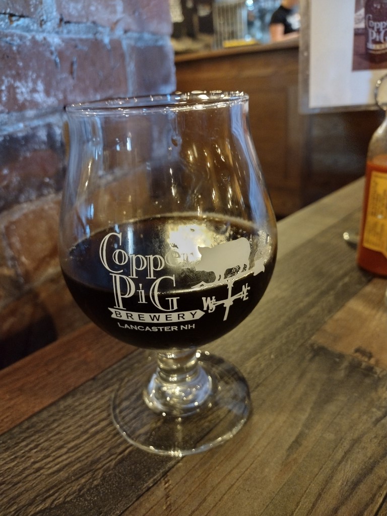 After Jeffersonville came Lancaster, that place in New Hampshire I’ve mentioned before. This town has captured my attention for a variety of reasons, and I try to miss no opportunity to discover something new there. As it was about 4PM and we were in need of another break from the road, the Copper Pig Brewery was the new place of the day.
