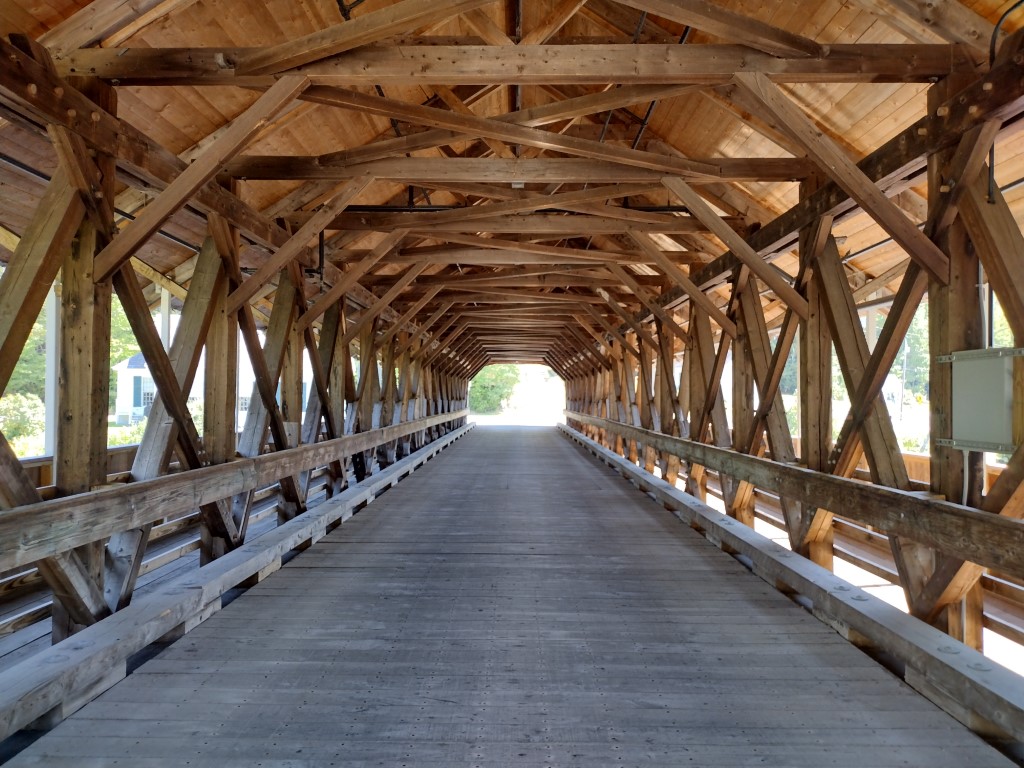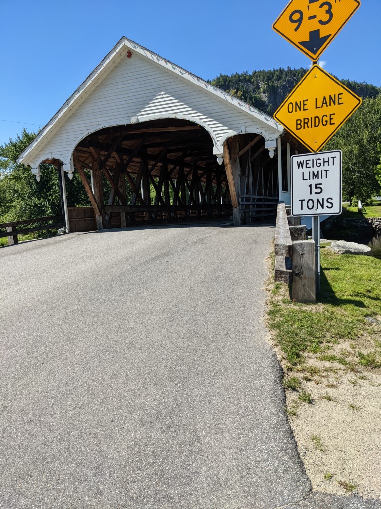 We headed east towards New Hampshire, and then south once we crossed the Connecticut River, tooling along US Route 3. We turned off to the east again, in the direction of Berlin, and on the way went through the Town of Stark. We’d traveled right past this little village many times, but this time we stopped. I wanted to see the covered bridge.