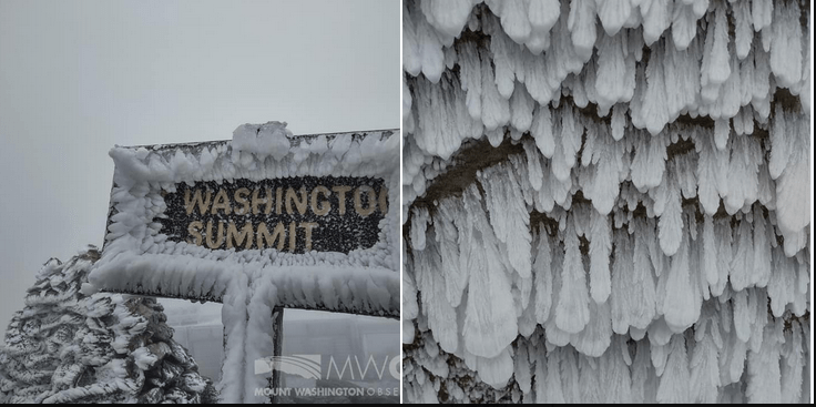 Close to this junction marker we came upon a young lady reclining upon her backpack, enjoying the late morning sun. She was a though-hiker on the AT, taking a midday break. We talked a bit, and she said she’d heard that it snowed on Mt. Washington recently. I related that I’d heard that as well, not having the heart to show her this photo that was on my phone from two days earlier. Ahead of her lay not only the Presidential Range, but the 100-Mile Wilderness in Maine, followed by Katahdin. This is some of the toughest terrain on the Appalachian Trail. And some of the worst weather.