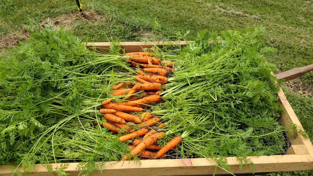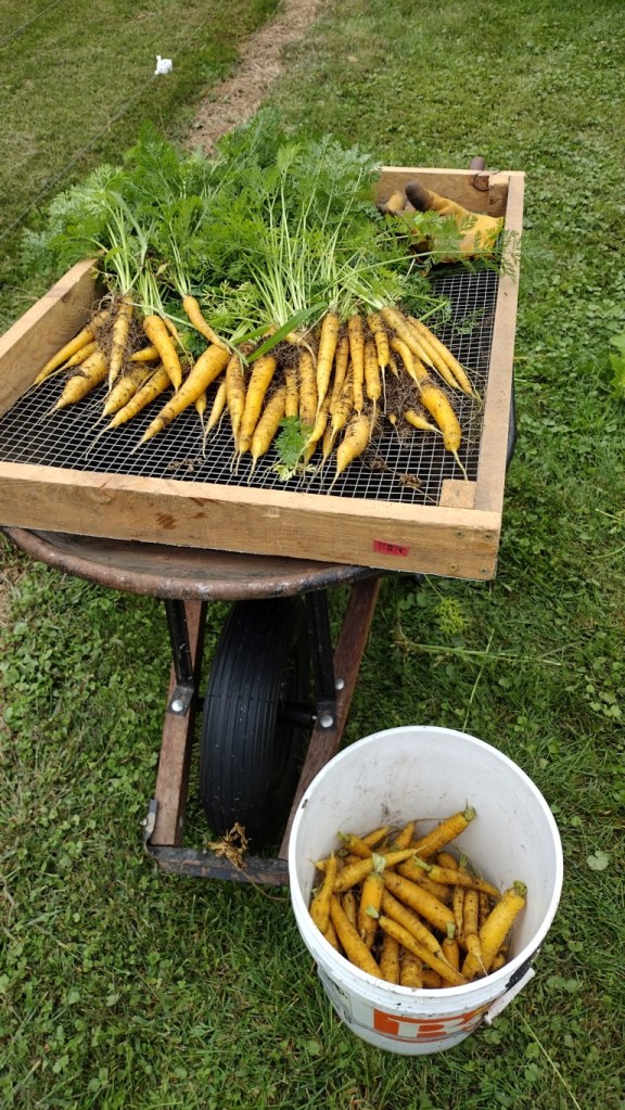 When this recent wetness began last Sunday, it was Carrot Day. This is one of the more labor-intensive harvest activities each year, and my wife and I devote the better part of a day to getting it all done.
