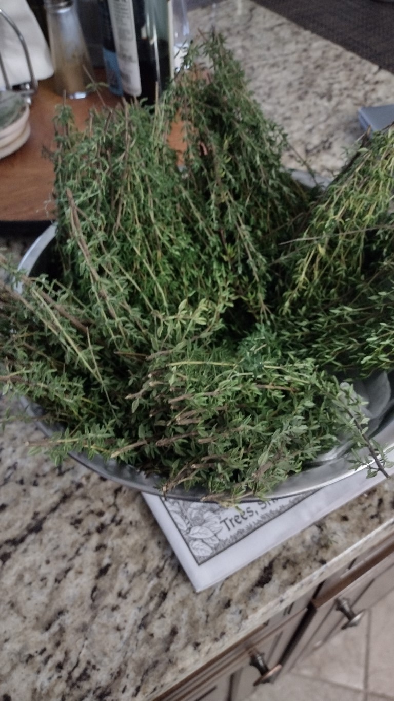 We are continuing to cut and dry the herbs we grow. This year it’s oregano, rosemary, thyme, dill and Italian parsley. Some years we add basil, but we’ve still a lot of that on hand from previous years. Here’s the cut German Thyme before heading into the dehydrator.