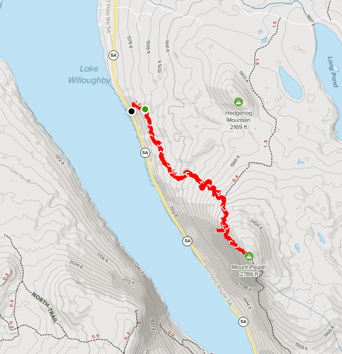 Mt. Pisgah rises sharply from the eastern shore of Lake Willoughby down in Westmore, about 10 miles from the house. I decided to head up the North Trail, which departs from the side of Rt. 5A. That Friday was rather overcast, but dry and not too cold. I arrived at the trailhead mid-morning and headed up the hill.