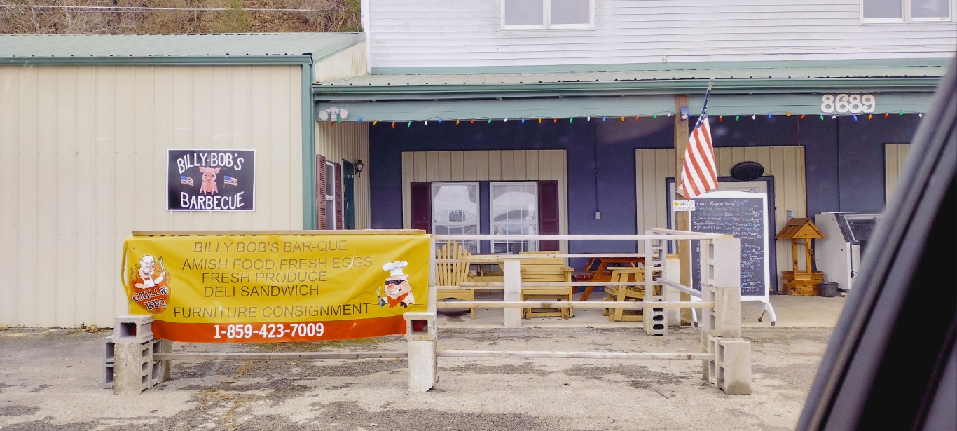 That turn took us into the parking lot of an old Mobil service station, converted years ago into retail space. Today it’s the home of BillyBob’s BBQ.