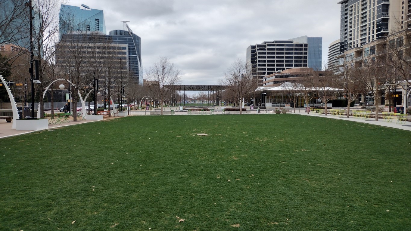 Directly across from the museum is Klyde Warren Park. This is a dog-friendly city park built on the top of a short tunnel- there’s a highway directly below! There are several restaurants and food trucks along the edges, loads of public seating with tables, and an impressive fountain at the far end.