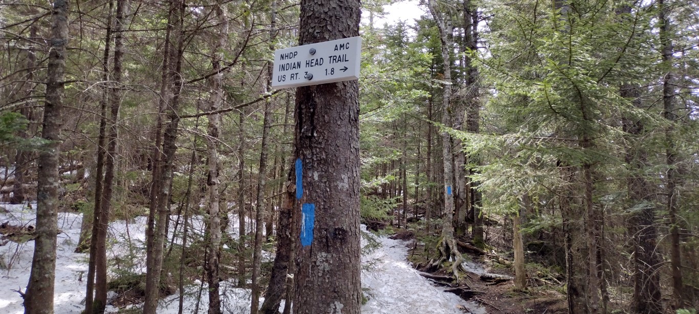 This final short section of the trail became very steep. It’s here that the remnants on the ice and snow appeared, but there were still plenty of bare spots to make it up over the boulders. I thought about putting on the microspikes, but didn’t. The Indian Head meets up with the Mt. Pemigewasset Trail as you near the summit.