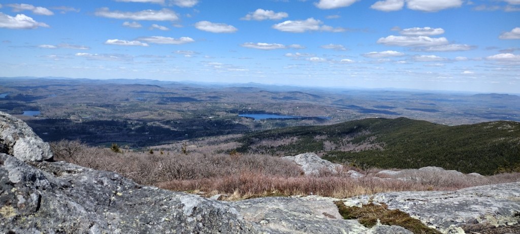 This hill is just about where Massachusetts, New Hampshire and Vermont abut each other- roughly the same latitude as Albany, I think. Unlike further north, it’s the only mountain of any height in the area, so the views are amazing. You can see the Boston skyline on a clear day.