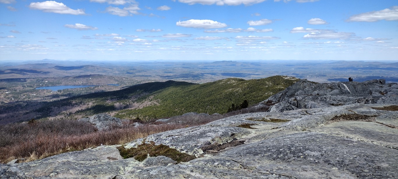 This hill is just about where Massachusetts, New Hampshire and Vermont abut each other- roughly the same latitude as Albany, I think. Unlike further north, it’s the only mountain of any height in the area, so the views are amazing. You can see the Boston skyline on a clear day.
