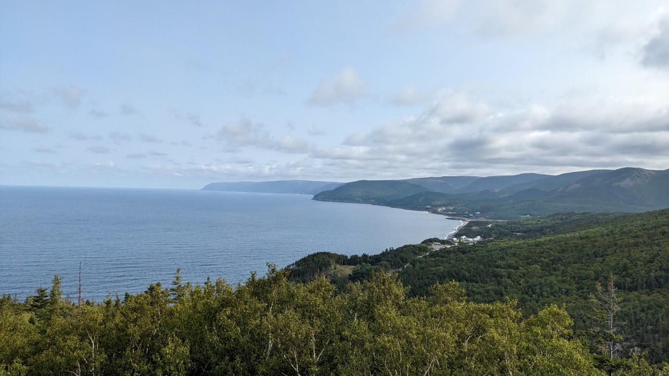 Once I was successfully retrieved, we stopped at a roadside picnic area within the park for a quick lunch before continuing around the park’s peninsula towards Ingonish Beach, where we’d be spending that night. I’d chosen the picnic area poorly, as the mosquitos were quite fierce. They drove us back into the car where we finished our lunch. Then it was off on the Cabot Trail, which is the name of the road traveling the circumference of the park.