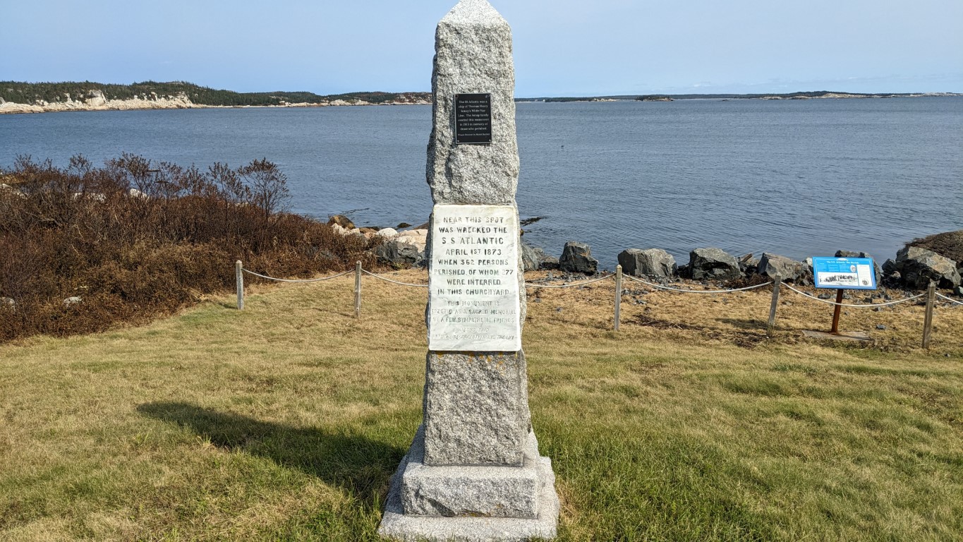 On the advice of a local we spoke with, on the return trip we stopped at Terrence Cove. This is the site of a memorial to the many that died when the S.S. Atlantic sank nearby in 1873. The story is worth knowing, as is a visit to the overgrown cemeteries near the monument.