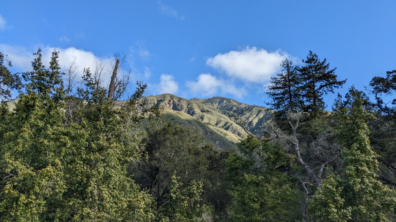 The ocean views weren’t the only attraction. Looking east, up the mountain ridge was equally as impressive. This section of the continent is simply mountains flowing into the sea. The highway was cut into the slope.