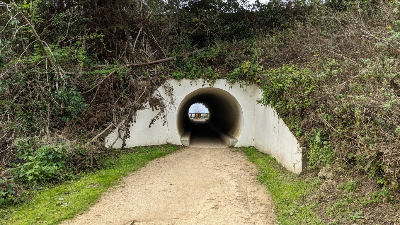 Once we reached McWay Falls, we parked the Jeep and paid the Iron Ranger a few bucks for the privilege. Then we walked the short distance down a trail and through a tunnel to view the falls. Which was pretty underwhelming, as water falls go. I think I’ve been spoiled by the ones we have in the mountains back in the Northeast.