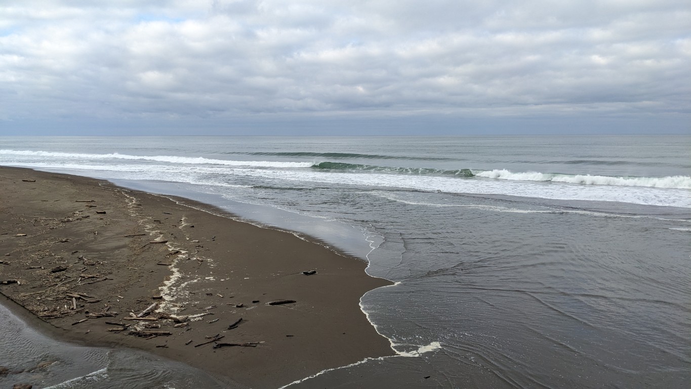 The beach was deserted save for us, and the mid-tide waves made good noise. Not too loud, but noticeable. Here’s a short video: