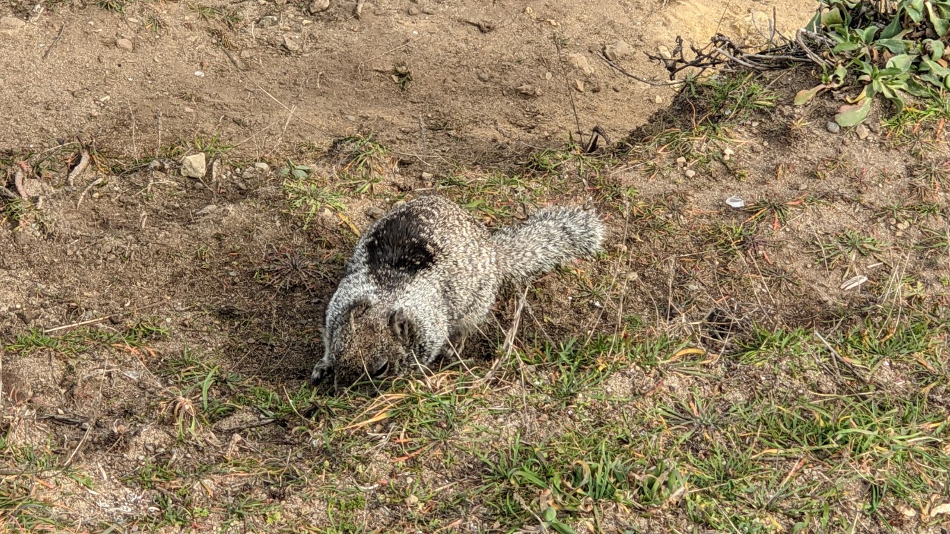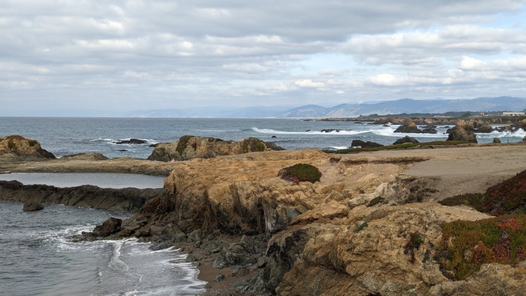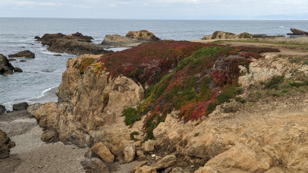 Before continuing north, we stopped by Glass Beach. This is an interesting place, and is located within the Fort Bragg downtown area. There’s plenty of parking by the short trail that heads down to the rocky bluffs by the ocean. It was pretty down there, and we met an interestingly colored squirrel.