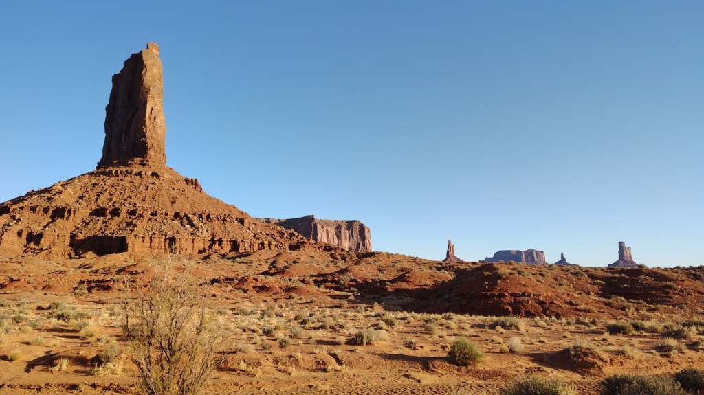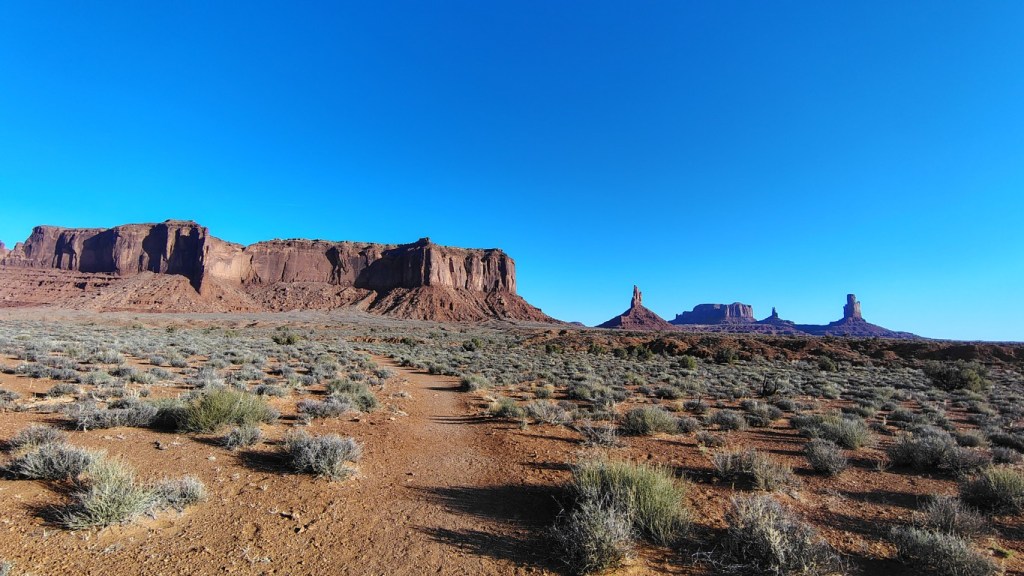 That was our last activity inside the Tribal Park, but not the last point of interest. We were planning to spend this night in Gallup, New Mexico as we began the trek eastwards. To get there, we would traverse much of the rest of the Navajo Nation lands we didn’t already see yesterday, and that trip started on US-163. After about 15 miles or so, we pulled the Jeep off to the side of the road, and turned around for this iconic view.