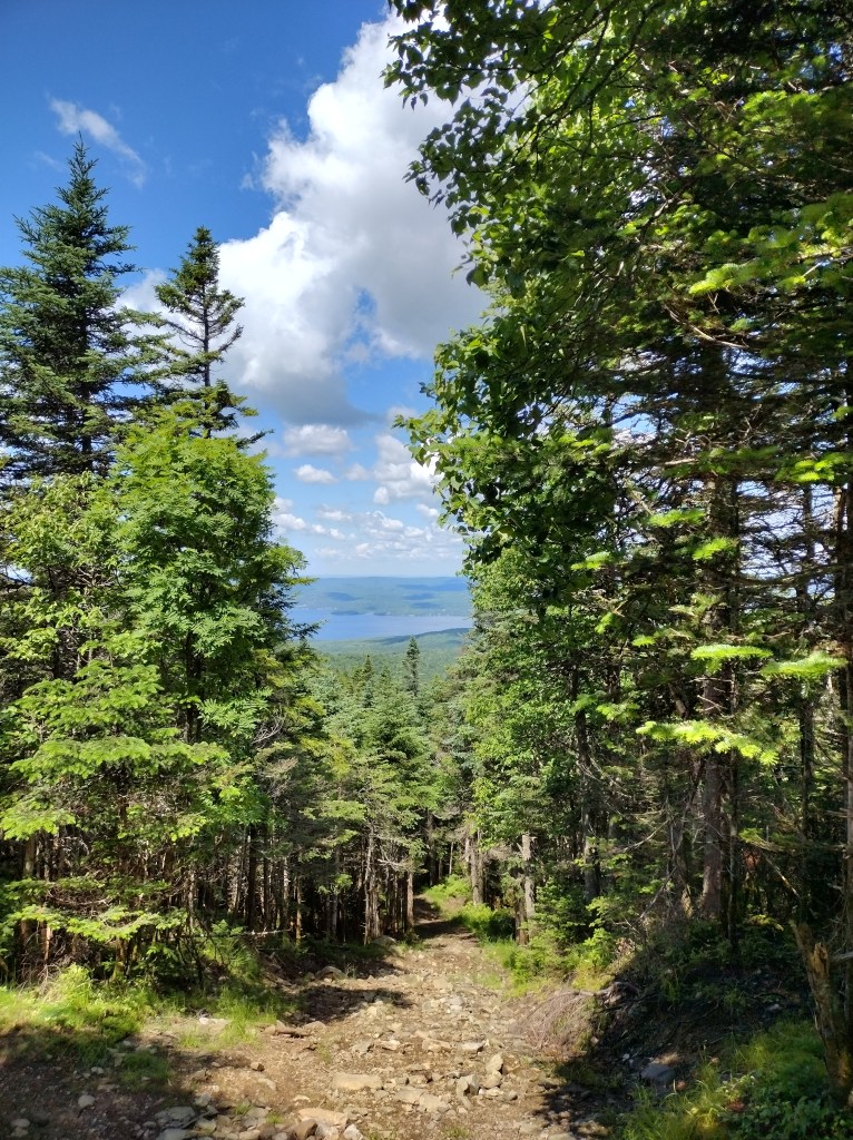 The entire trip up & down plus topside wandering was about two miles total. Elevation gain, including the tower was over 900 feet, so it was fairly steep. Well worth the effort though, for Magalloway offers some of the better views I’ve found in northern New England. There were a few others on the trail that Friday, but not so many that you’d take special notice of it.
