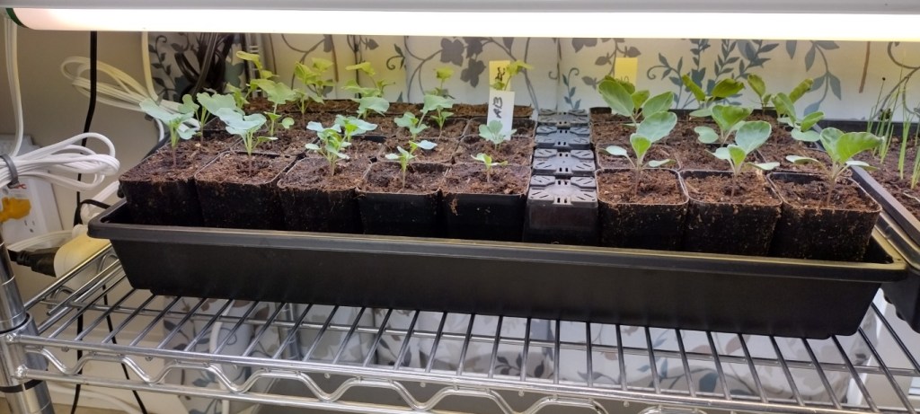 The indoor seedling grow is doing very well. I was obsessing over the failure of the King of the North peppers and Italian Parsley to germinate to the point of buying some new seed and starting more of each. Of course, as soon as I did this the original plantings popped. It looks like there will be an overstock of pepper and parsley seedlings come June.