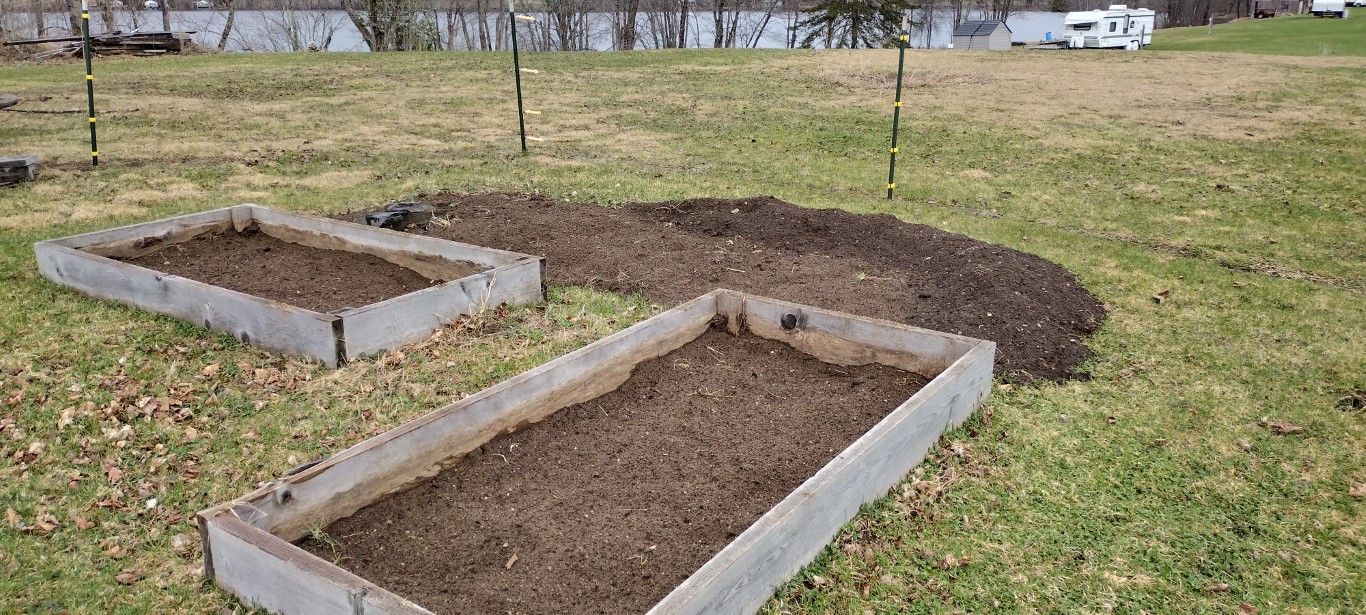 The old dirt I deposited in a low spot north of the beds, and built a berm around the northeast corner of the garden plot. I’ll give a try growing some sunflowers here later in the year. Sunflowers aren’t too picky about where they’re planted, as long as it’s bright.