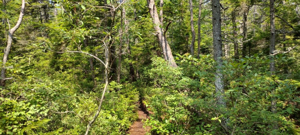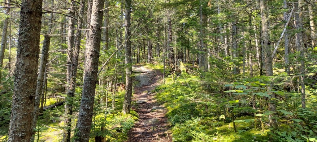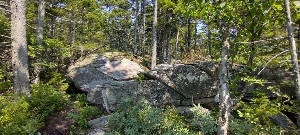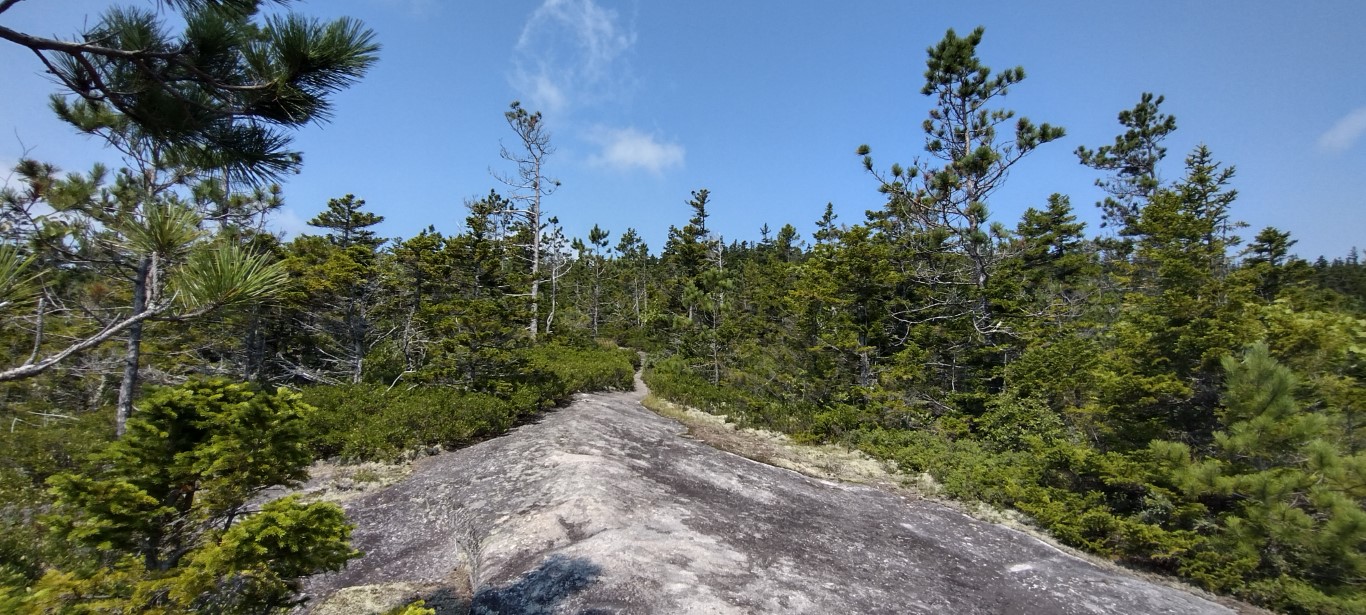 It’s less than two miles to the top of Blueberry, and around the halfway point the old, familiar smooth granite rock face appeared. Went through a bit of a flat spot, and then more rock going upwards. The trees were thinning out significantly.