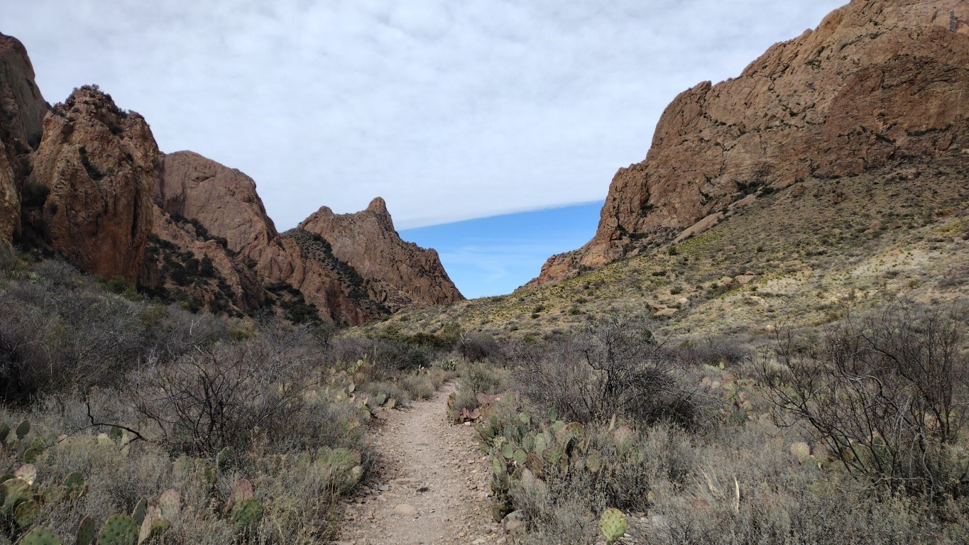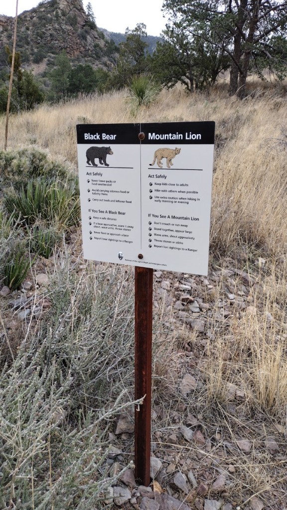 We parked very close to the trailhead in one of the parking lots at the Chisos Basin Campground. Wife was going to stay with the Jeep and catch up on this and that while I took the walk. The trailhead was well marked, and included a warning sign.