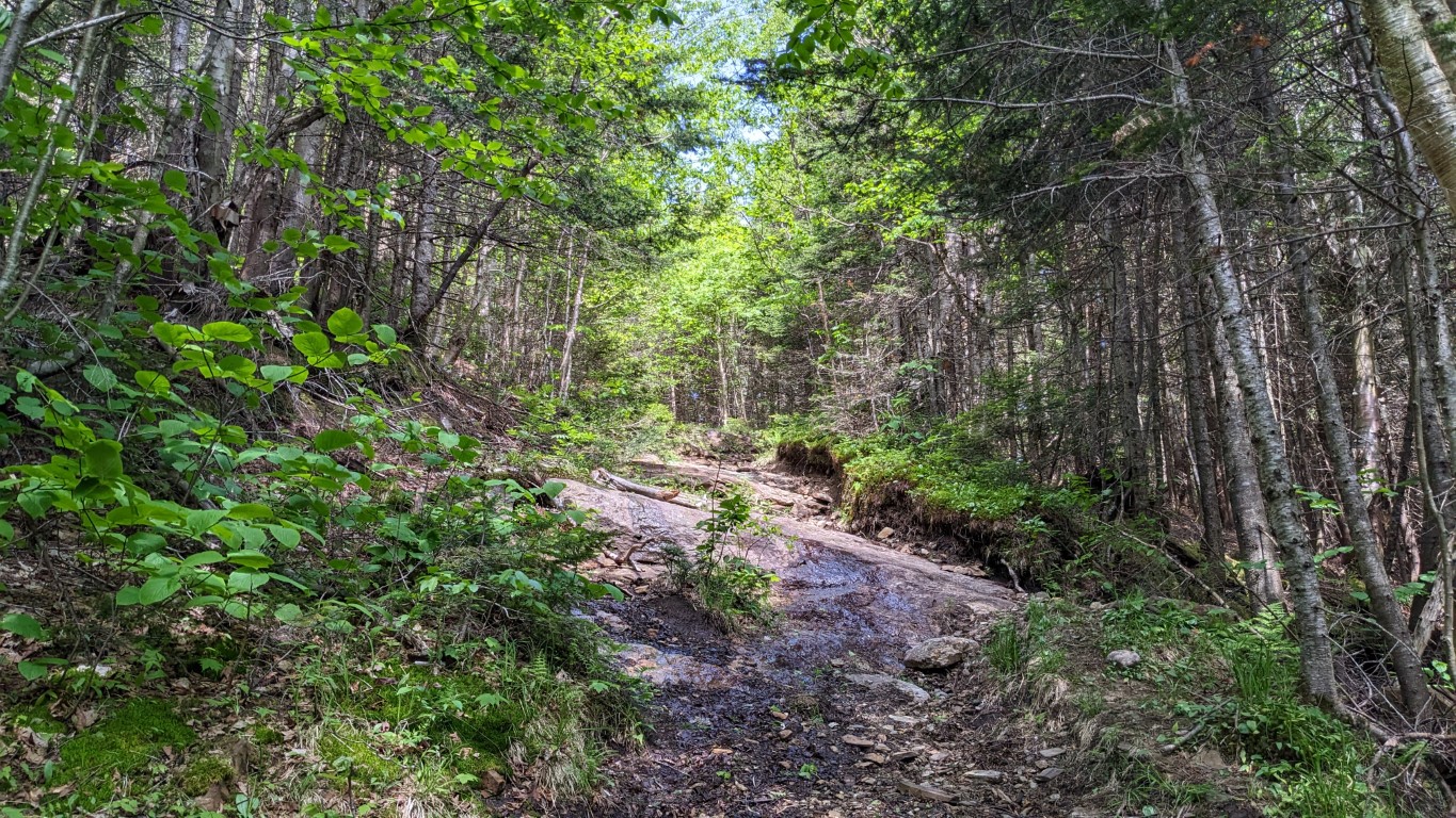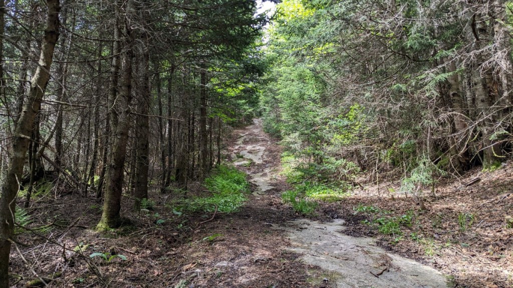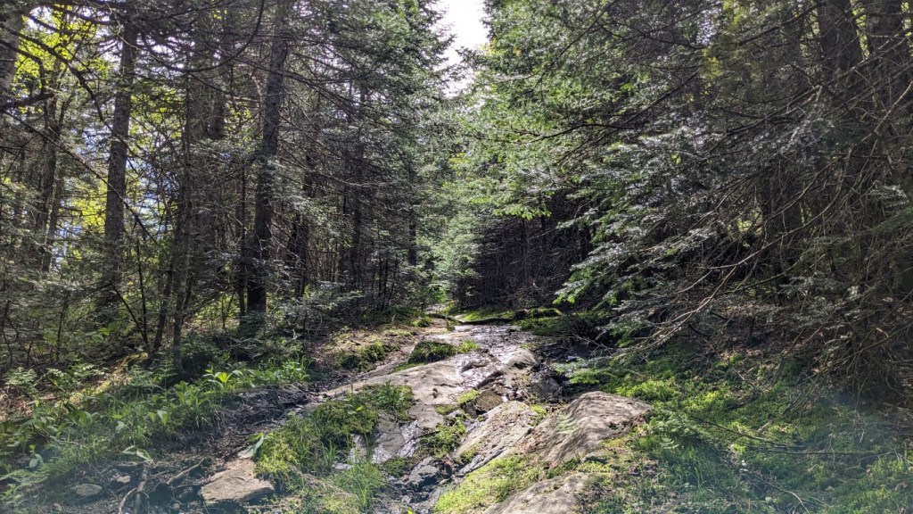 At his point the trail begins to go up, with the incline becoming increasingly greater. This part of the trail was much wetter, with many muddy patches. They were all easily navigable. Bear in mind this is an old Vermont trail- there are no switchbacks. To go up, you go up! There was also a lot of moose scat on this section of the trail- kept coming upon it almost to the summit.