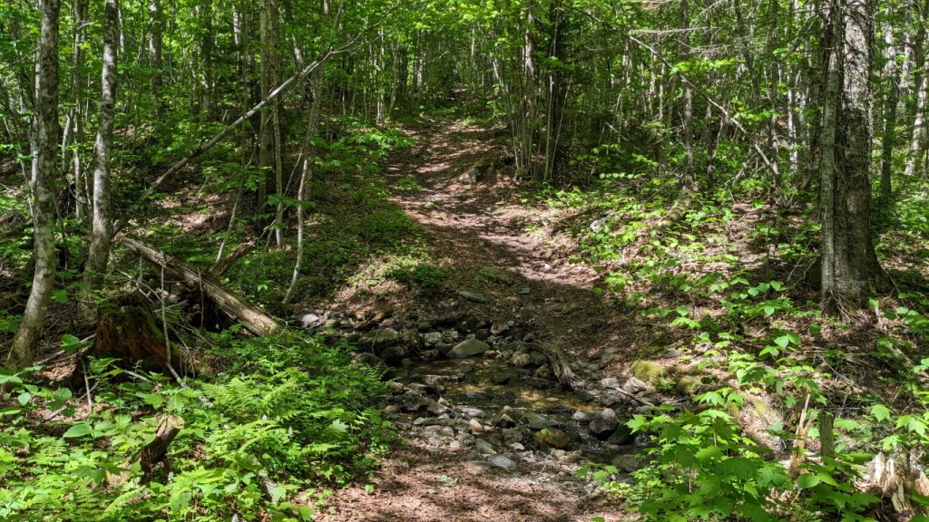 The trail enters the forest after crossing several hundred yards of open field. There it follows an old woods road for quite a spell. The path is fairly flat, until about the 1.4 mile mark when it’s time to cross Mad Brook.