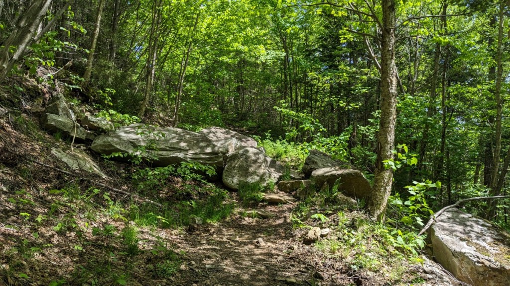 Getting the garden in hasn’t slowed down the hiking. This is the time of year I reclimb several of the local hills, and this year I started with Bald Mountain in Willoughby State Forest.