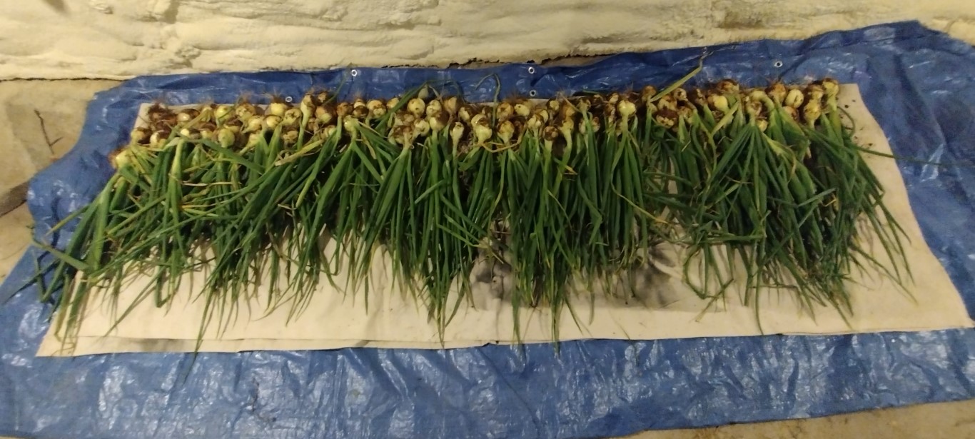 Other crops didn’t mind the water as much. The three beds of onions produced good harvests, particularly the white onions. We got some red ones, too, but they were smaller than last year. I think that may be due to the change in seed forced upon us this year, as the Rossa di Milano variety wasn’t available and we had to substitute Red Weathersfield seed.