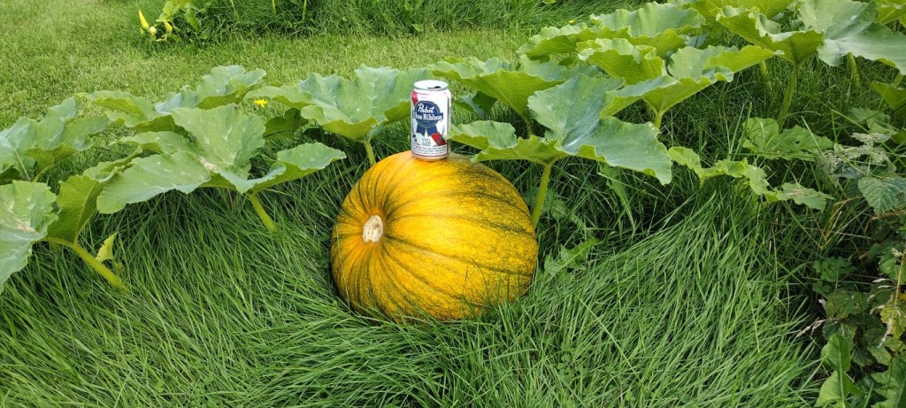 The incessant wet had a very positive effect upon the squash and pumpkin patch. We’re going to have a very nice harvest of Butternut squash in a few weeks. And boy, do we have some pumpkins this year. Biggest I’ve ever grown.