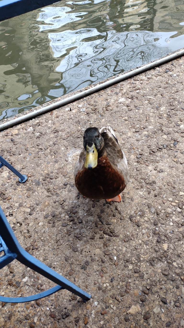 The canalside restaurants were banal and expensive. No matter which outdoor venue chosen, the very aggressive birds would descend upon you immediately, as would some of the ducks that made their home on the water. Landing on your table or plucking at your pant leg, they wanted your food. Now. Here’s a male mallard intent upon getting his fair share.